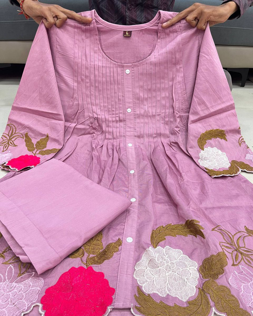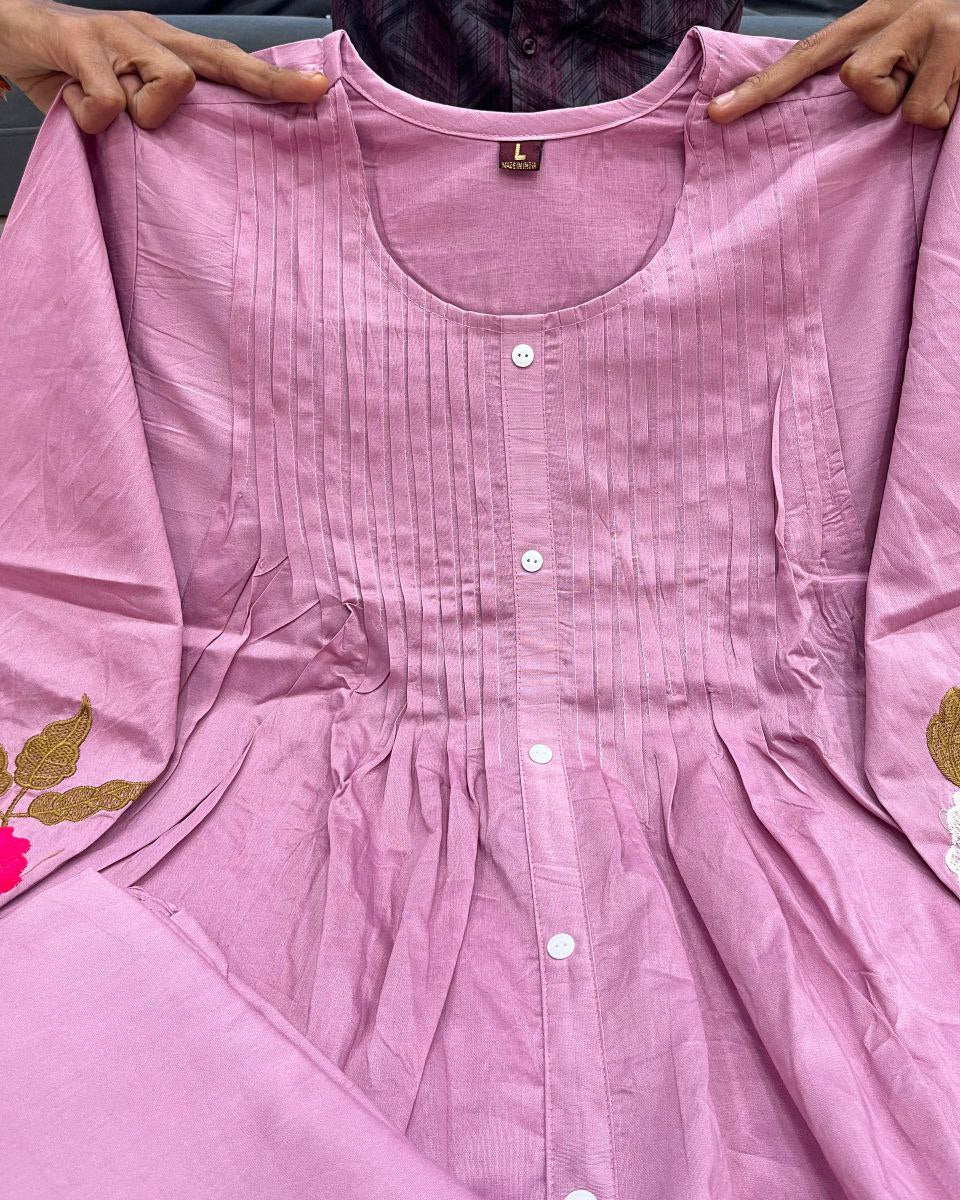 Elevate your ethnic wardrobe with this elegant co-ord set crafted from premium Mul Chanderi fabric, known for its soft texture and graceful drape. Designed with delicate embroidery work, this set reflects timeless charm with a modern touch. It comes with a comfortable cotton lining, ensuring ease of wear throughout the day.