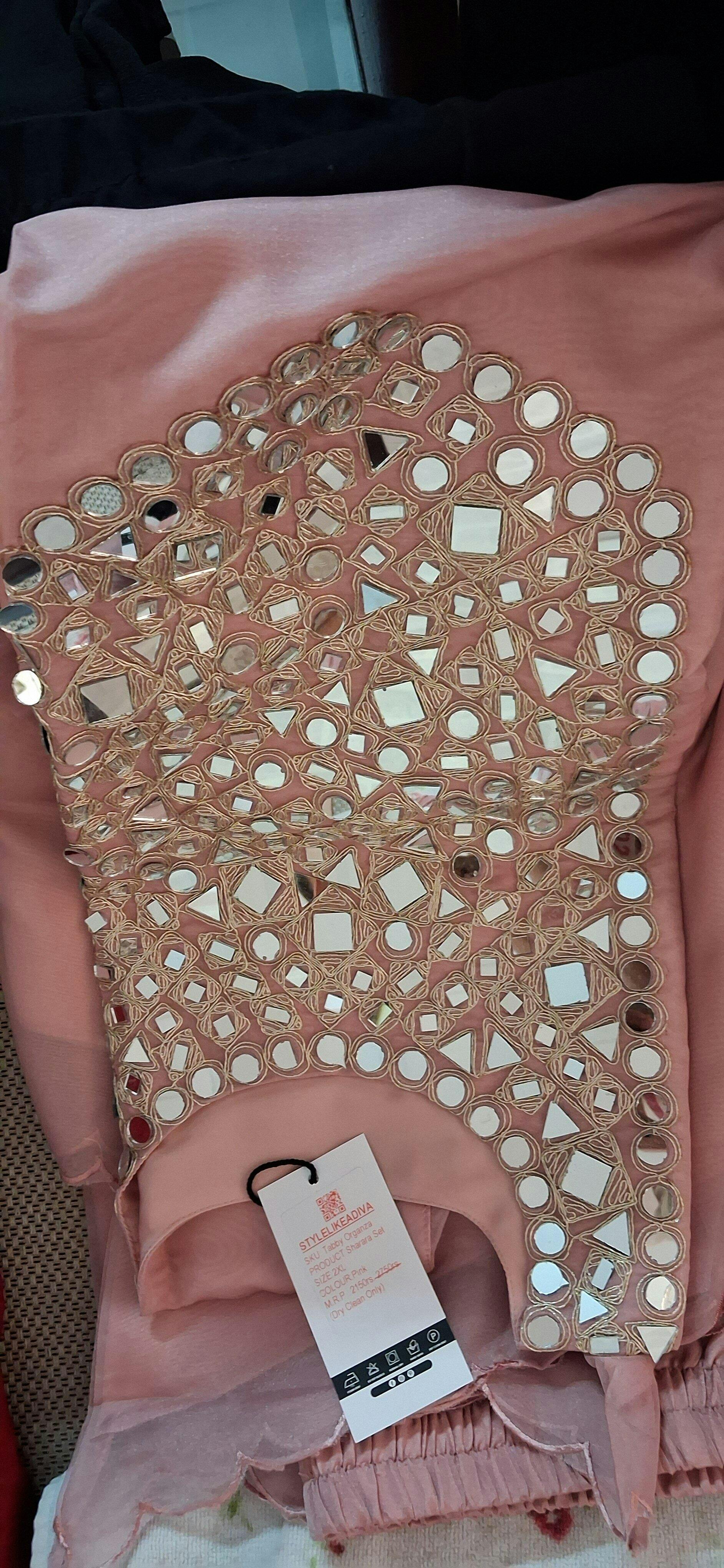 The yoke is detailed with coded embroidery and original mirror work, adding richness and tradition to your modern look. Finished with stunning Arkha work on the edges, this outfit brings style, comfort, and celebration together!