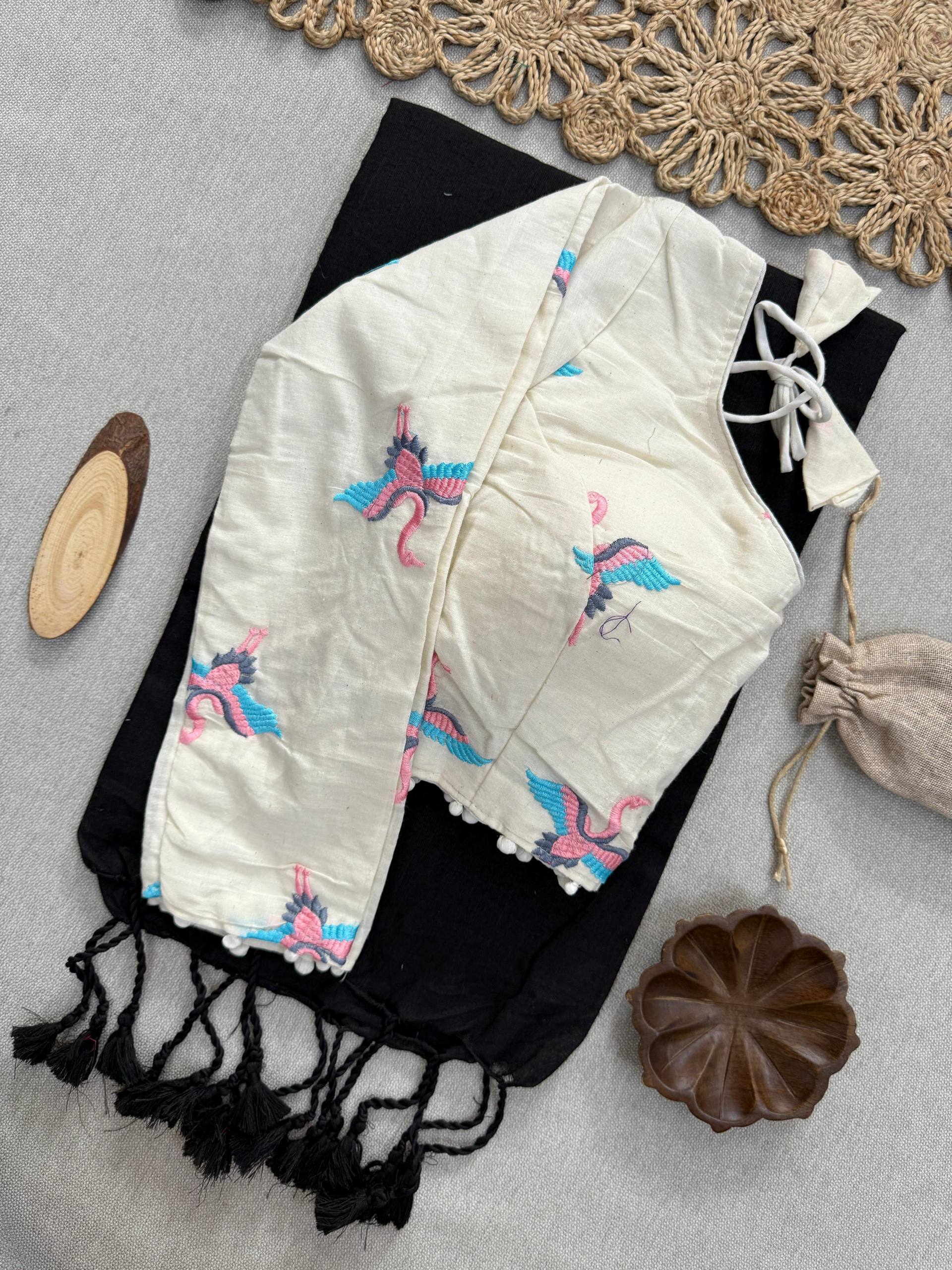 🌸 Blouse Fabric: Heavy Embroidery on Aura Cotton, beautifully padded with pure cotton lining for comfort and a flawless fit.